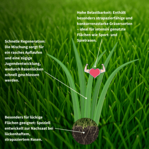 Hohe Belastbarkeit: Bestens geeignet für Spiel-, Sport- und Gebrauchsrasen